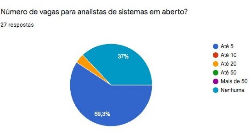 Em outro setor dentro de tecnologia da informação, de analista de sistemas, 59,3% têm até cinco vagas abertas, enquanto 37% responderam que estão com as equipes preenchidas.