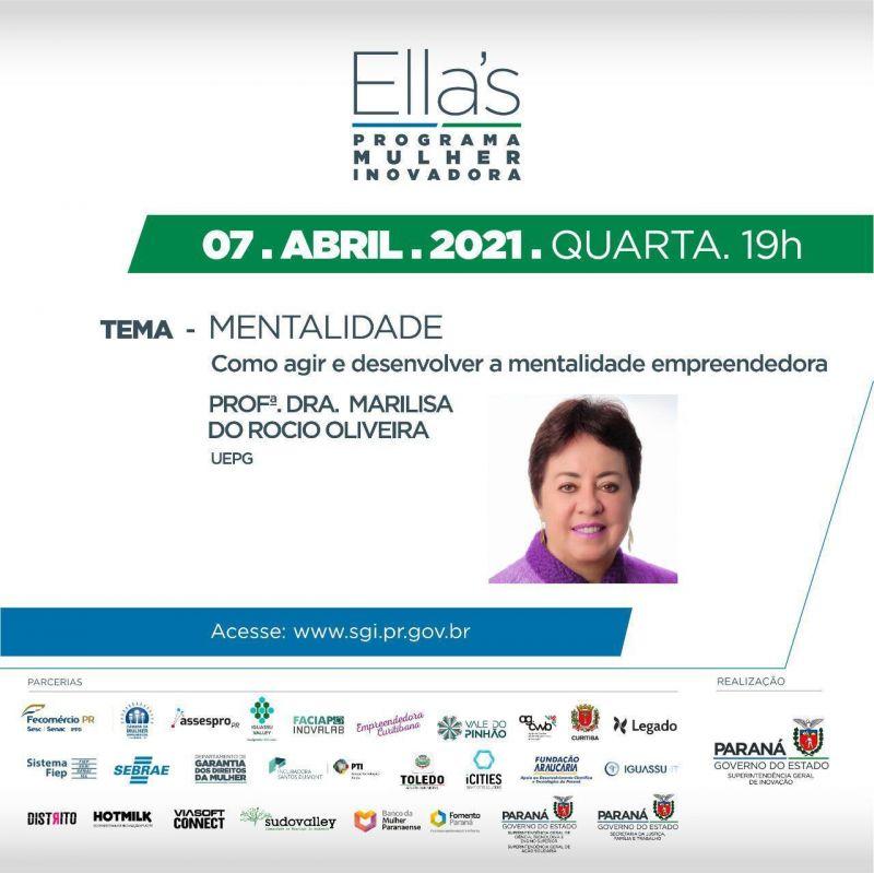 Nesta quarta-feira (07), o tema é ‘Mentalidade: Como agir e desenvolver a mentalidade empreendedora’. O workshop será conduzido pela professora-doutora Marilisa do Rocio Oliveira, da Universidade Estadual de Ponta Grossa (UEPG). A inscrição, para participação ao vivo, a partir de 19 horas, pode ser feita pelo link