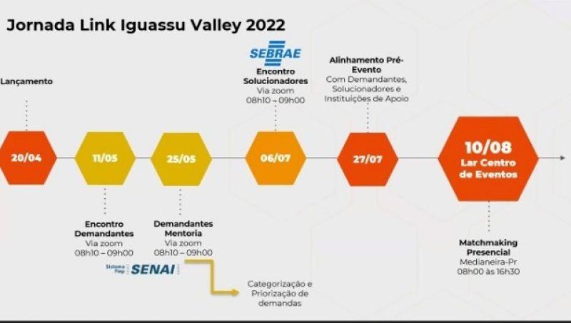 O Link Iguassu Valley 2022, programado para 10 agosto, no centro de evento da Lar Cooperativa Agroindustrial em Medianeira, já cumpriu quatro etapas de encontros no período compreendido pela jornada de preparação. Ao todo serão oito meses de trabalho com abordagem a duas trilhas de ações, com demandantes e solucionadores, realizados por intermédio de encontros online e pós-evento.