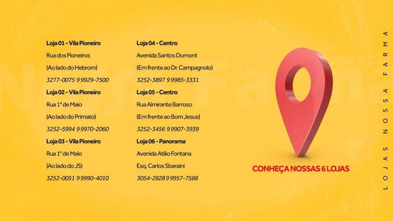 A Rede de Farmácias Nossa Farma, situada no município de Toledo-PR, conta com 6 lojas, sendo uma delas a única farmácia 24h da cidade, e conta com profissionais capacitados e altamente treinados para melhor lhe atender.